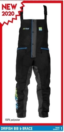 Een gloednieuwe, geüpdate versie van de voorgaande DriFish Bib & Brace, uitgevoerd in een stijlvol, lichtgewicht Grey & Black waterdicht materiaal dat perfect het gehele jaar door te gebruiken is. Dit product profiteert ook van belangrijke verbeteringen zoals versterkte gedeelten bij de knieën en in het zitgedeelte, een rekbaar gedeelte rond het middel, verstelbare riemen en een dito enkelgedeelte.Â