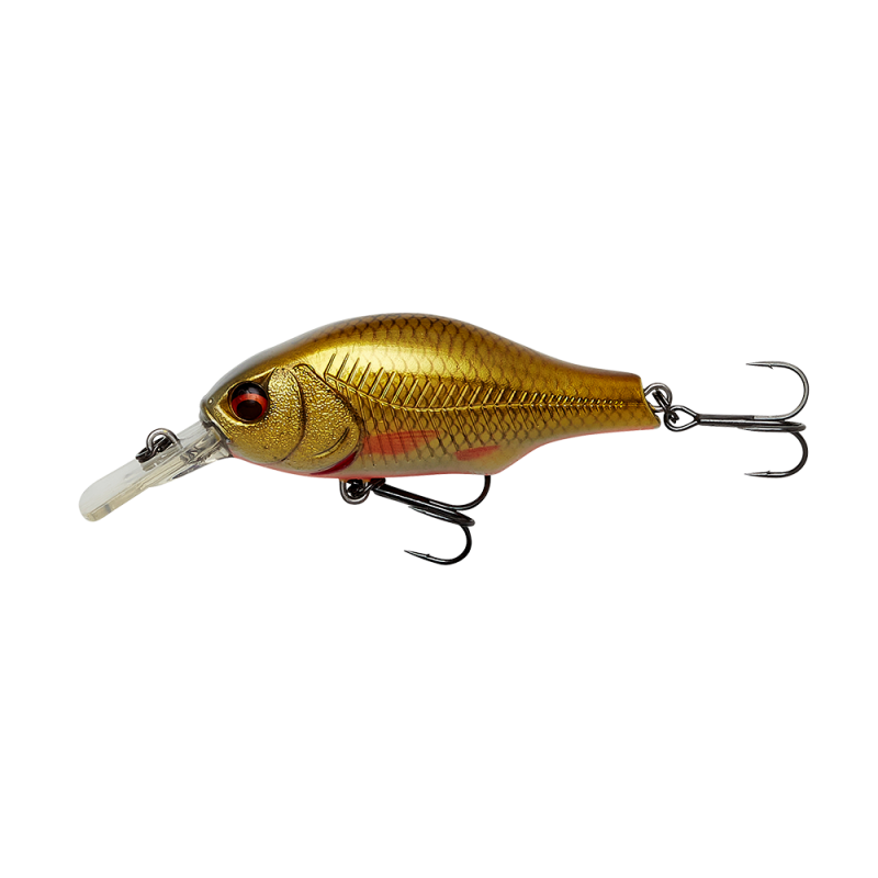 Super gedetailleerde Crankbait, met uitstekende details. Vierkante snavel, medium uitloper, met een hoge gebogen rug, veel water bewegend bij het binnenhalen, geweldig wiebelen, brede actie, met hoog drijfvermogen, omhoog bewegend in het water bij spinstop. Ingebouwde buisvormige ratelkamer, die een luid en karakteristiek geluid uitzendt. Het magnetische langgietsysteem, met een glijdende ijzeren kern, maakt ver en nauwkeurig werpen supergemakkelijk. Geweldig kunstaas voor baars, snoek, forel, snoekbaars, roofblei en baars.