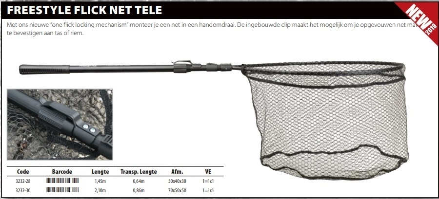 Met ons nieuwe āone flick locking mechanismā monteer jeĀ een net in een handomdraai. De ingebouwde clip maakt het mogelijk om je opgevouwen net makkelijk te bevestigen aan tas of riem.Ā